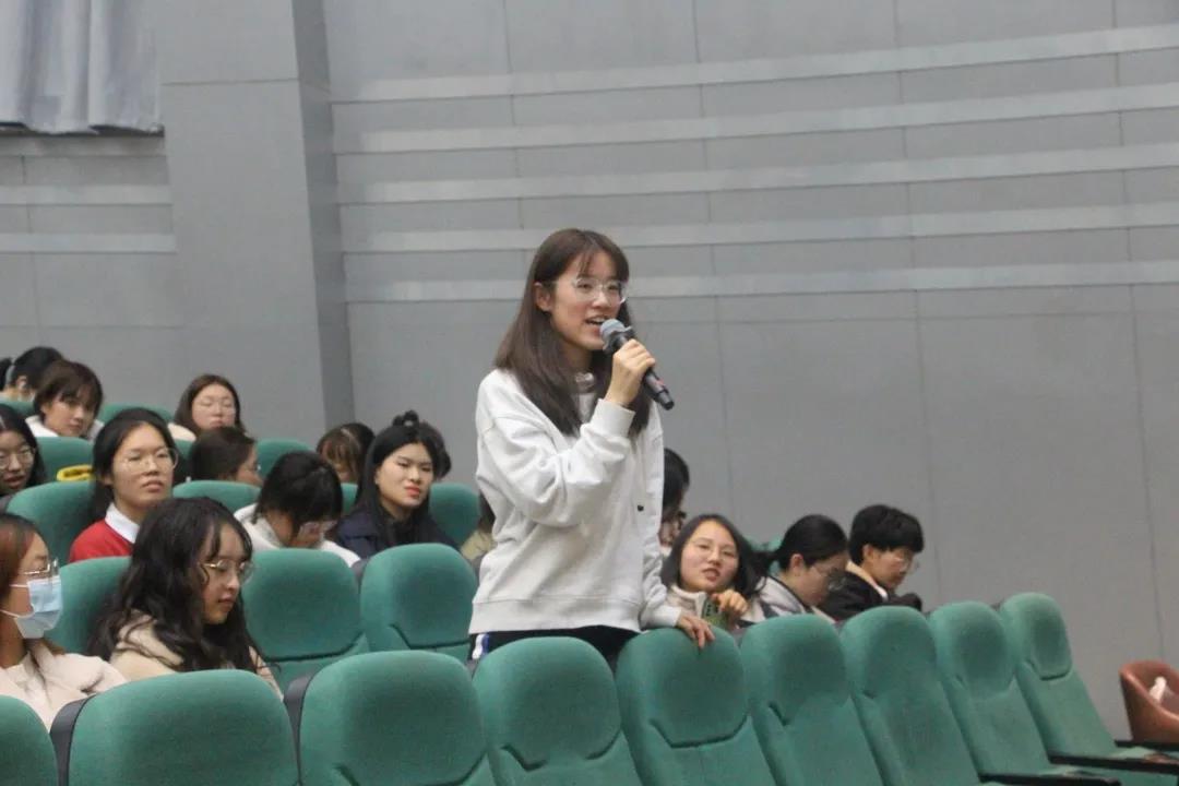 提问环节中,同学们踊跃发言,提出了学习方面的困惑和对于师范技能大赛的疑问。七位参赛者从自身经历出发,耐心进行了解答,使大家对师范技能竞赛有了更充分的了解。