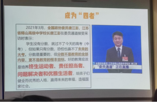 “孩子其实并不是你们的孩子。他们是生命对自身渴求的儿女。他们借你们而生,却并非从你们而来。”开篇边教授通过纪伯伦的诗,向大家分享了一个观点——孩子是独立的。在这个理念的指引下,她善于发现孩子的特质,注重开发孩子潜能,当她发现自己的孩子音感很敏锐时,她开始注重培养孩子的音乐素养,从幼儿园开始学习奥尔夫音乐、电子琴,后来转学钢琴,通过考级和参加活动,激励孩子坚持爱好,现在孩子担任北大钢琴社社长。同时,她指出,“学习和爱好是不矛盾的,人无癖则无趣,应该注重培养孩子的爱好特长,这些高尚的情趣会陪伴孩子的一生”。正是这样,他的孩子不仅是一个学霸,更是一个会多种乐器、能创编和即兴伴奏的音乐才子。同时,她也认为每个孩子都有自己的特点,教育应该回归本质,培养孩子健全的人格,让孩子找到合适的位置,成为最好的自己。她指出,虽然说孩子考上了北大,但并不能依此下论断就是成功的教育,孩子的成人成才还有很长的路需要探索。她引用全国政协委员唐江澎的话,“好的教育应该是培养终生运动者,责任担当者,问题解决者和优雅生活者”。