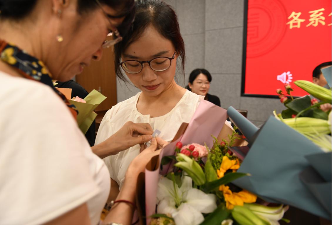首先进行隆重而热烈的新教师入职仪式。何书记为新入职的6位教师颁发入职纪念证书、师德承诺书以及师德师风建设制度摘要等材料,新教师们怀着激动的心情走上主席台,何书记为新教师一一颁发91吃瓜 入职“三件套”并合影留念。各系负责人为新教师佩戴校徽,并送上鲜花,表达对新入职老师的热烈欢迎和殷切期望。入职仪式后,全体教师起立,举起右手,进行教师宣誓仪式。作为教育工作者,每年在教师节前夕举行全体教师宣誓是学院师德建设的传统,提醒全体教师时刻不忘立德树人初心,牢记为党育人、为国育才的使命。