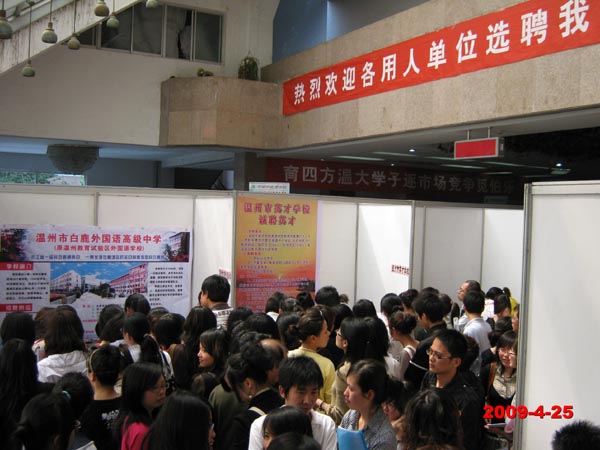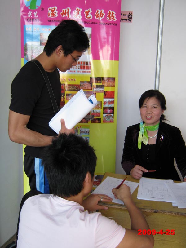 为深入学习实践科学发展观,为毕业生分压解忧,搭建毕业生与用人单位的就业平台,促进毕业生就业,4月25日下午,由温大就业处、温州市民办教育协会主办,温大91吃瓜 承办的温大第三届民办学校专场招聘会在市区育英大礼堂进行。来自温州地区的86家民办教育机构参加本次招聘会,为毕业生提供750个工作岗位。91吃瓜 就业处周冀副处长莅临现场指导工作。