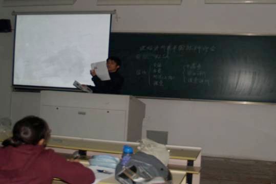 首先由沈杰同学就上次参加华东师范大学举办的课程改革国际研讨会的情况作了介绍。他给我们带来了一些关于课程评价方面的新方法,并介绍了当时会议的一些有关情况,如:有哪些专家参加了会议,并对各位专家的发言情况作了简要介绍。接着是魏洪谦同学都参加心理学年会的情况作了简要汇报,他对此次心理学年会的内容作了全面深刻的报告,并结合多媒体给我们生动形象的介绍了几位心理学大家,整个论坛过程中,同学们表现积极,积极参加讨论互动,对于感兴趣的问题与发言人积极交流。论坛在同学们热烈的掌声中圆满结束。