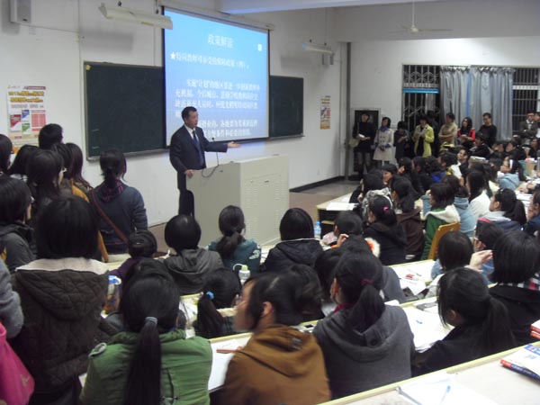 此次讲座受到了同学们的热情响应,为大家备战解析疑惑,指明方向,知己知彼,才能更好的应对挑战。应毕业生的要求,11月26日晚将再开一次同主题同内容的讲座。(学生记者:王倩倩)