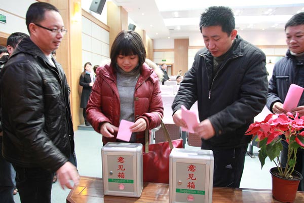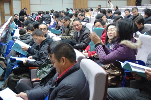 下午1:00大会进行分团讨论,分成六个代表团,围绕《学院工作报告》、《学院工会工作报告》及《学院津贴分配方案(草案)》等进行讨论。在各分会场,大家各抒己提见,踊跃发言,并形成集体意见向大会汇报。3:00左右,大会举行第二次全体会议,胡来林院长主持会议。在轻松的乐曲声中,全体教职工就学院工会委员增选等9个事项进行表决,经过民主表决与投票,顺利通过《学院工作报告》等九个议项。此外,大家还原则上通过了《学院津贴分配方案(草案)》。