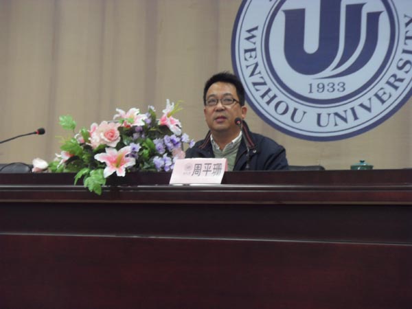 虽然天气寒冷,飘着细雨,却丝毫没有降低师生们前来听演讲的热情。讲座还未开始,会场里已经人头攒动了。周平珊教授首先做了简短的自我介绍,作为一名温大(原温师院)毕业生,他非常感谢母校对他的培养,作为一名温州地区的教育工作者,他十分关注当代师范生的成长。他的谦虚风格迅速拉近了彼此的心灵距离。