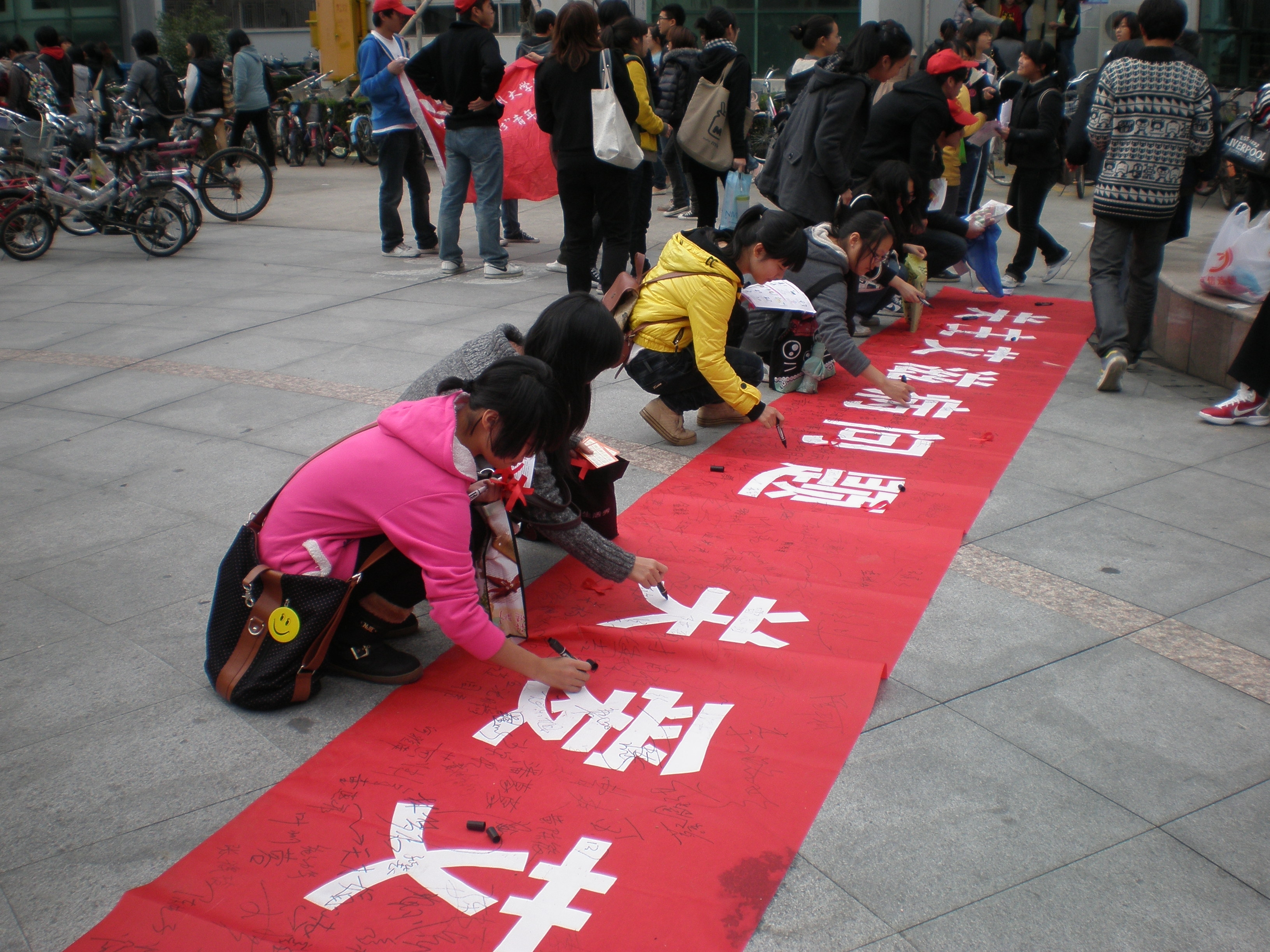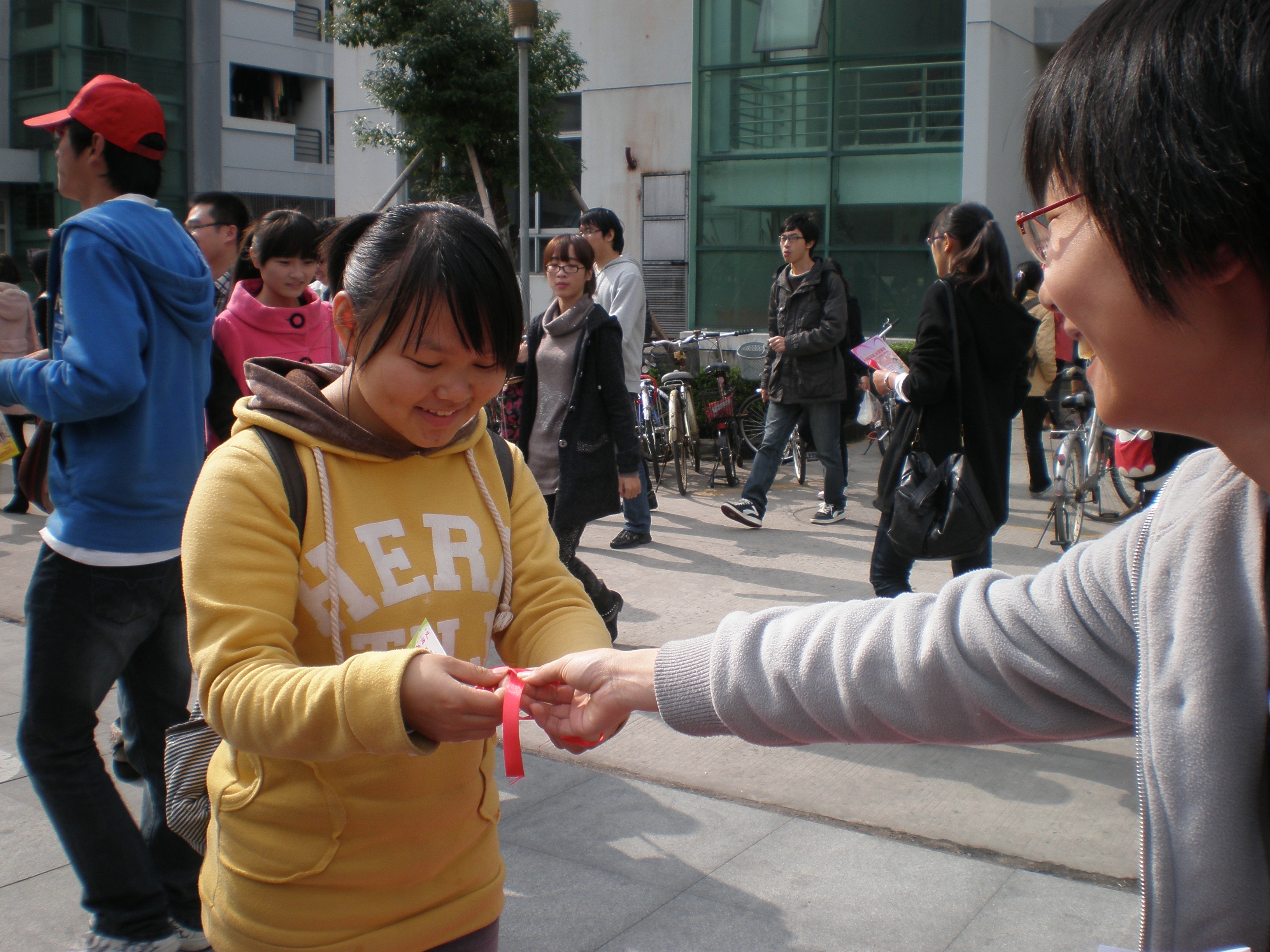 青年志愿者和团学干部与校医通过向同学们分发各种预防艾滋病的宣传单、折页等,义务为同学们进行艾滋病防控知识宣传,并现场解答咨询。期间还穿插进行艾滋病预防知识有奖问答、现场签名活动。很多同学表示,宣传普及预防艾滋病知识很有意义,而且还了解了不少艾滋病的防控知识,艾滋病虽然可怕但却是可以预防的。 校医务室的医生表示,通过宣传,可以进一步提高同学对艾滋病预防知识的知晓率,增强同学自我防范意识和防护能力。同时,动员更多的人参与到艾滋病预防知识普及和关爱艾滋病病毒感染者及患者的行动中去。