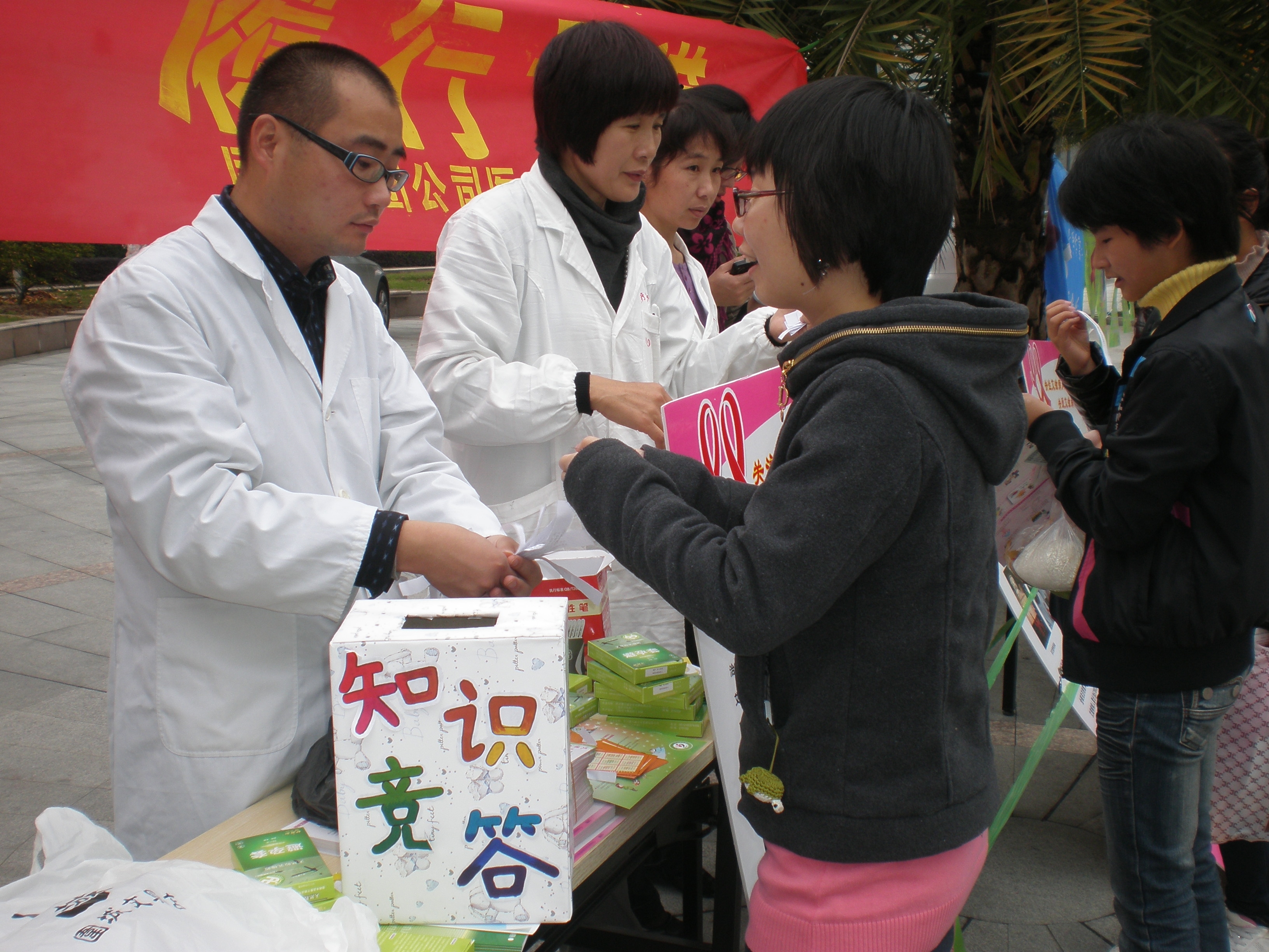 与校医务室在C区联合举办艾滋病防控宣传活动,向同学们宣传艾滋病防治知识,发放宣传资料、纪念品等。