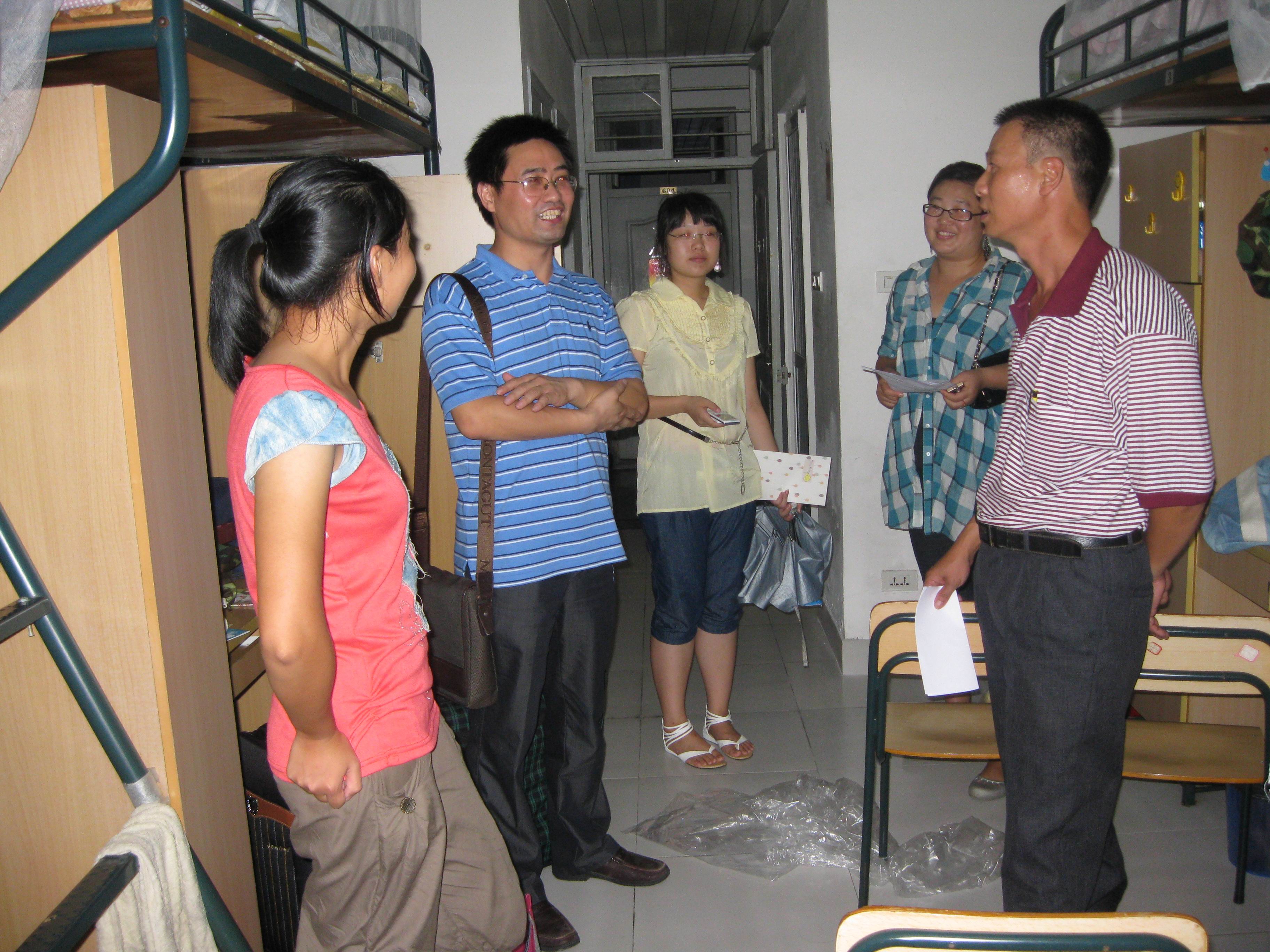 新生宿舍。蔡校长与新生亲切交流,嘘寒问暖,并对新生寄予很高的期望;副书记林娟娟、牟德刚还与学生家长们热情攀谈,详细解答家长们的疑问,消除他们的后顾之忧。