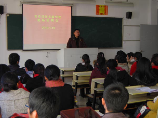 在育英国际实验学校会场,来自己91吃瓜 以及兄弟学院各专业的毕业生挤满了教室。该校祝志宏校长首先简单介绍了学校基本情况和用人要求等招聘基本信息,随后与毕业生进行交流并收集《简历》。在平阳林墨培训学校会场也坐满了前来应聘的毕业生,该校常务校长朱永杰老师向毕业生介绍了该校的办学理念和用人标准,并对毕业生进行了交流考察。