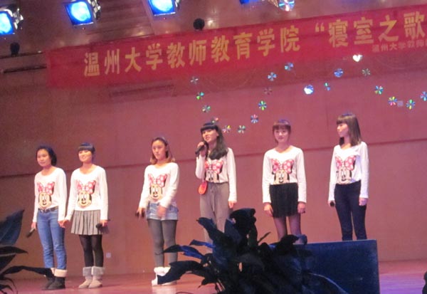 08学前中专三班的同学用热情洋溢的开场舞,瞬间点燃了全场观众的激情。在热烈的掌声中,来自18个参赛寝室的选手们一一登台,用那些熟悉的旋律,经过集体的精心改编,着实别有一番风味!10学前中专三的六个可爱的女生更是身着统一的睡衣出场,一首《GO,GO,Girl》将寝室女生的活泼可爱尽显。歌词中透漏的那些生活的岁月,那些点点滴滴的小事,都引起现场观众的共鸣。