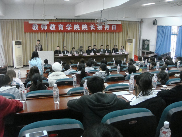 胡来林院长首先发言,他言简意赅地陈述了本次活动的目的与意义后,就把宝贵的时间交给了在场的学生代表。学生代表们就所关心的课程学习、专业发展、毕业求职等问题踊跃提问。例如小教本科同学提问:“小教专业在大二下学期要分数学、科学、语文三个方向。而若想当一位数学老师,但是在大一没有接触数学,这样的跨度是否太大?”;又如学前本科专业同学体提问:“现在一些幼儿园对学前专科的同学认同度很高,那学前本科毕业生有何优势?”对于这些连珠炮式的问题,学院领导和各系主任都给予了深入解答。在紧张愉快的互动交流中,时间飞逝流转,两个小时在不知不觉中悄然过去。