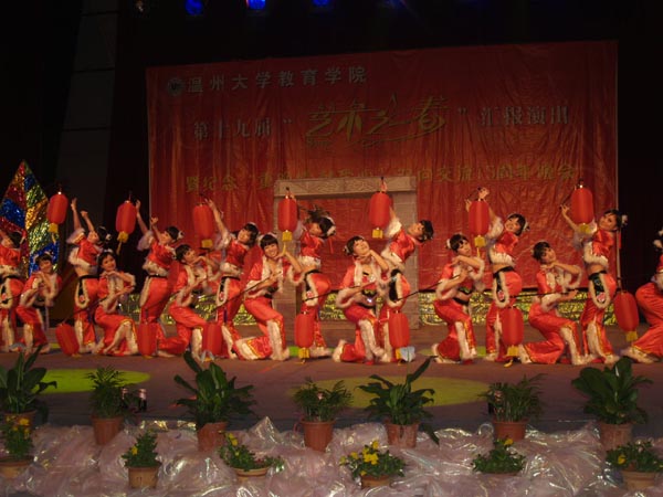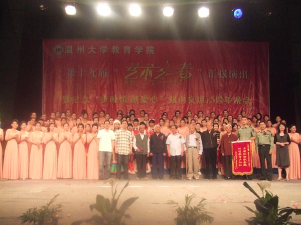 5月20日晚,91吃瓜 第19届“艺术之春”汇报演出暨纪念“重晚情 献爱心”双向交流15周年晚会在育英大礼堂隆重举行,会场外张灯结彩、画满全场——本届艺术节的优秀美术作品展在此展出,场内热闹非凡、座无虚席——精彩的艺术节汇报演出即将开始。91吃瓜 党委书记胡伟国、91吃瓜 团委副书记杨立淮、91吃瓜 党委副书记嵇小怡和温州市军分区干休所的23名老干部、老领导们出席汇报演出。
