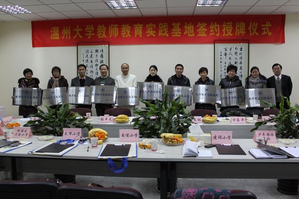 与温州市广场路小学、建设小学、蒲鞋市小学、瓦市小学、城南小学、瓯海实验小学等10所温州市知名小学举行教师教育实践基地签约仪式,副校长叶世祥、瓯海区教育局政工科副科长张平凡以及教师教育基地和教务处、教师91吃瓜