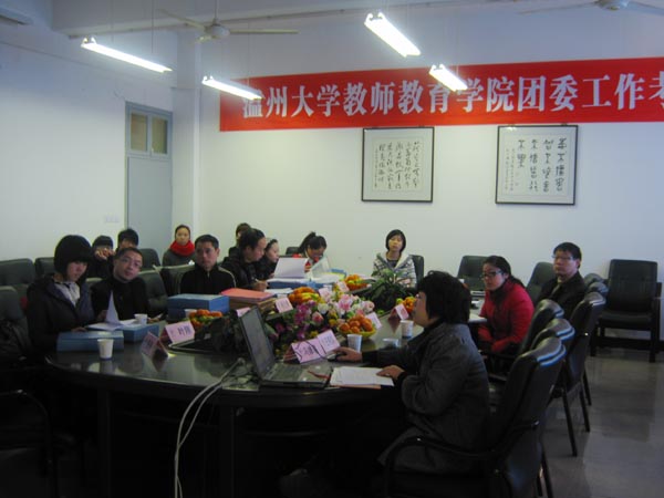 ,开展对2010年度学院团委工作考核。学院书记蔡联群、副书记嵇小怡、学生科长章志图、团委书记陈秀雅和相关学生干部出席考核会。考核工作在3-311会议室进行。