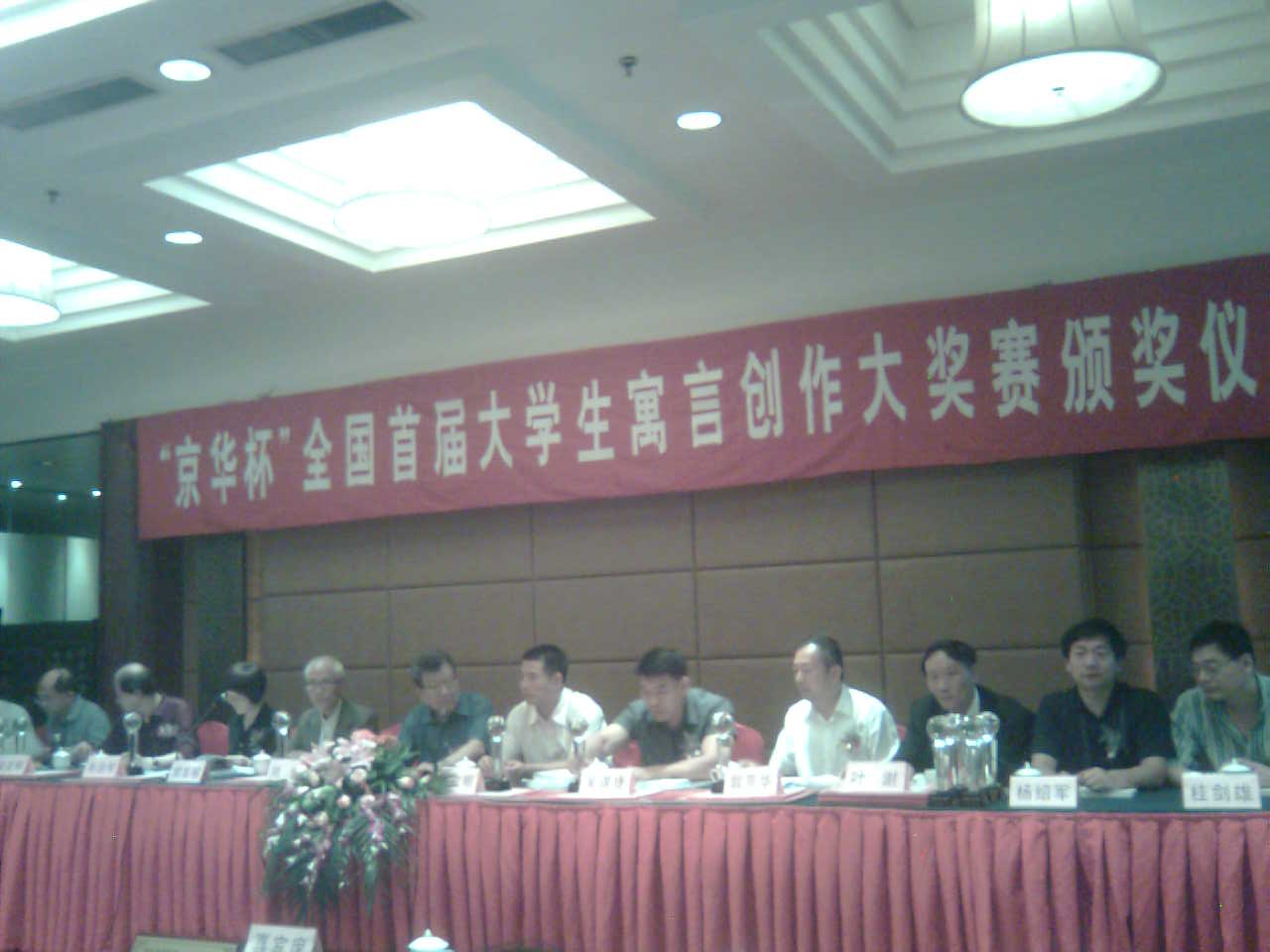 参加此次颁奖大会的著名寓言作家有:刘 斌(中国寓言文学研究会会长) 、樊发稼(中国社科院研究员、研究生院教授、中国寓言文学研究会名誉会长)、叶澍、马长山、安武林、杨绍军、桂剑雄、张鹤鸣、邱国鹰、瞿光辉、徐强华等。期间,林思思同学还作为大学生代表献花给刘斌会长和温州国际寓言城筹委会主
