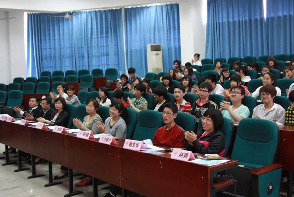 胡来林院长总结发言。他详细介绍了教育技术专业的发展情况,鼓舞大家树立专业信心培养专业兴趣。他指出导师制的出台,能促进学生发展,形成更强竞争力。他希望全系师生要充分发挥积极性,注重师生交流,切实发挥导师制在学生成长中的作用。
