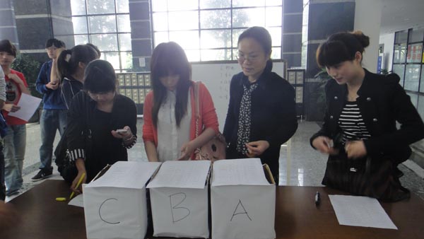 此次比赛以团体赛形式分组进行,每组两队,每队五人。参赛选手要在三个箱子里各抽取三张搜书单,选手根据每张搜书单所指定的书目,利用平常对图书馆的了解或者使用图书馆电脑检索系统,找出图书。赛前由负责人讲解比赛规则,选手们仔细聆听,大家的脸上充满自信与活力。随着裁判员一声哨响,选手们都不约而同地栽进书海中,紧张忙碌去寻找搜书单上所指定的9本书。人文学院团队在赛前任务分工明确,仅以9分38秒的速度最快找到全部书籍获得第一名,让在场的工作人员都佩服不已。