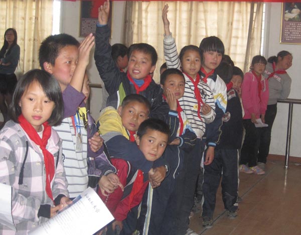 接着,知心姐姐给同学们表演了三个情景剧,分别是女儿考试成绩不理想与母亲争吵,同桌间因误会而相互赌气,对待同一事物两姐妹截然不同的反应。请同学们说说看后的感受,也为剧中的主人公支支招。知心姐姐的表演惟妙惟肖,小学生们也看的津津有味,一个个都争着要发表自己的感想,有的说“友谊是最重要的,不应该因为一些小玩笑、小矛盾而破坏了友谊”;有的说“不同的人对待同一事情的态度是不同的,应该学会用积极的心态去面对生活” ……知心姐姐们用掌声对他们的感想进行了表扬。