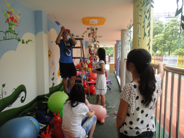 今天的活动内容主要是继续帮宁大创意实验幼儿园设计园内的部分环境,大家依旧分3组行动,队员们各自分工、埋头苦干,又相互合作,不断构思着、摸索着。和昨天相比,队员们的设计思路拓宽了,少了些许约束,多了分大胆,奇思妙想不断涌现,不再为没有想法而苦恼……每当一个好点子在每位队员脑中闪现,都会忍不住告诉其他组员,在听取他人建议、获得认可后,立即动手做。幼儿园方面也相当给力,一方面给实践队充分创作空间;另一方面,提供完备齐全的材料,以及让队员们在舒适的环境下工作。兴许是出于想回报幼儿园领导、老师的信任和照顾,兴许是灵感如泉涌了,兴许是想让祖国的花朵更早地在温馨美丽的环境下学习生活,兴趣是抱着对专业的热爱,队员们都工作的特别认真……不管为何,大家都仅是希望贡献自己的一份小小的力量,这无关义务与责任,一切均源于一个“爱”字。