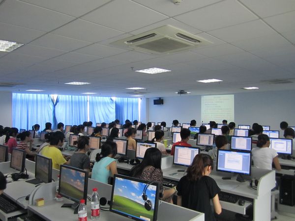 6月11日上午8点,教学设计和多媒体课件制作考核项目在北校区六号楼机房紧锣密鼓地开展起来。考生们在4个小时内完成指定课文的教学设计和PPT,并提交至指定的服务器上。6月13日至15日由各专业老师进行网络评阅。