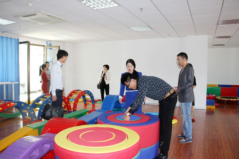 在学院领导的陪同和戴聪聪老师的介绍下,凯奇集团一行参观了蒙特梭利教学实验室、奥尔夫音乐法教学实验室、感觉统合实验室,他们对实验室给予了很高的评价,并就教具配置及布局等方面进行了深入交流。