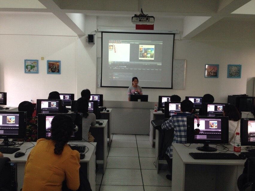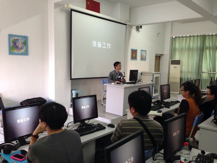 培训活动分为三个环节:专家讲座、操作示范以及实践操作。专家讲座中,王佑镁教授分析了微课领域国内外发展动态,详细阐释了微课的设计方法、开发技术、典型应用及案例。整个讲座形象、生动、直观,传递了微课制作与使用的前沿技术,激发了全体教师了解微课、制作微课、使用微课的热情。在操作示范环节,由付金灵和王志临两位研究生示范了使用录屏软件Camtasia Studio V8.1开发微课的录制、编辑、输出等操作;最后一个环节,是由教育信息化研究所全体研究生指导的实践操作,让各个老师实践体验录屏微课的开发任务。