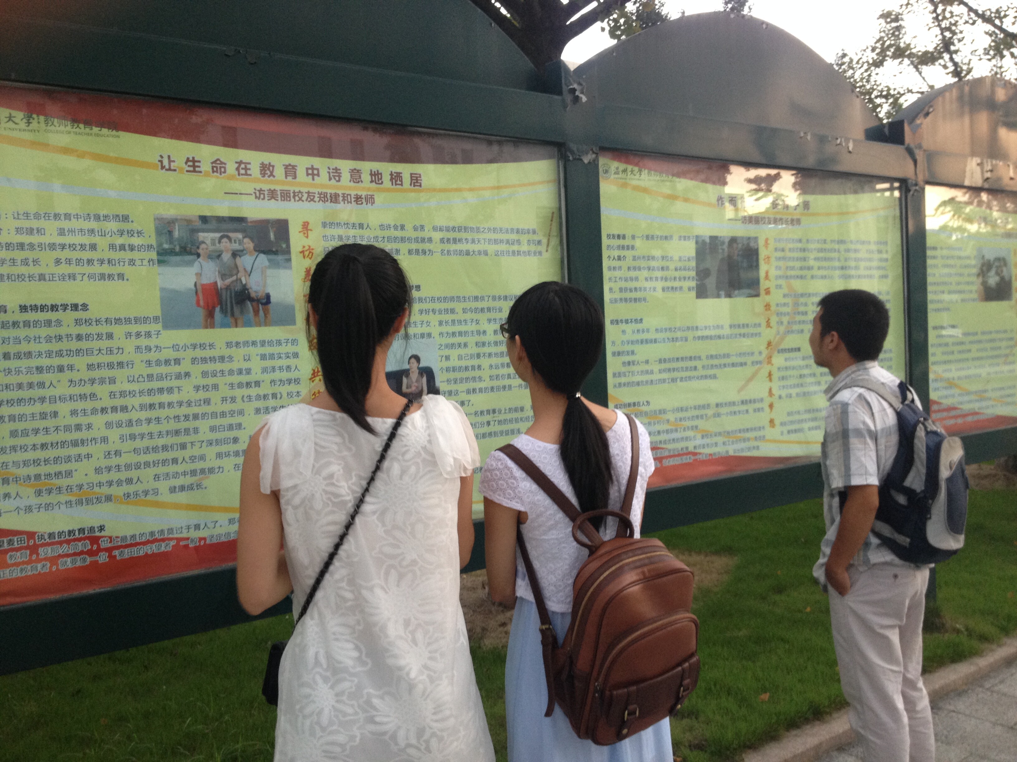 “访美丽校友 筑青春梦想”暑期实践队寻访陈国同先生、胡君校长等52位校友事迹。展出内容主要包括校友寄语、校友简介和校友事迹等,从教育理念、教学模式、学校特色培养等,收获优秀校友多年来在教育事业上打拼创新的实践成果。每一位校友身上都蕴含着鲜明的师范气质,每一位校友背后都有一个鲜为人知的故事,每一个艰苦卓绝的成长历程都激励着同学们前行。 校友,乃同校之友,在校成长,对校回馈。带着年轻的梦想,趁着年轻,勇敢追梦,让教育之花绚丽绽放。愿每一位教育学子成为多年后的优秀校友,青春如梦,携手同行,有你有我!