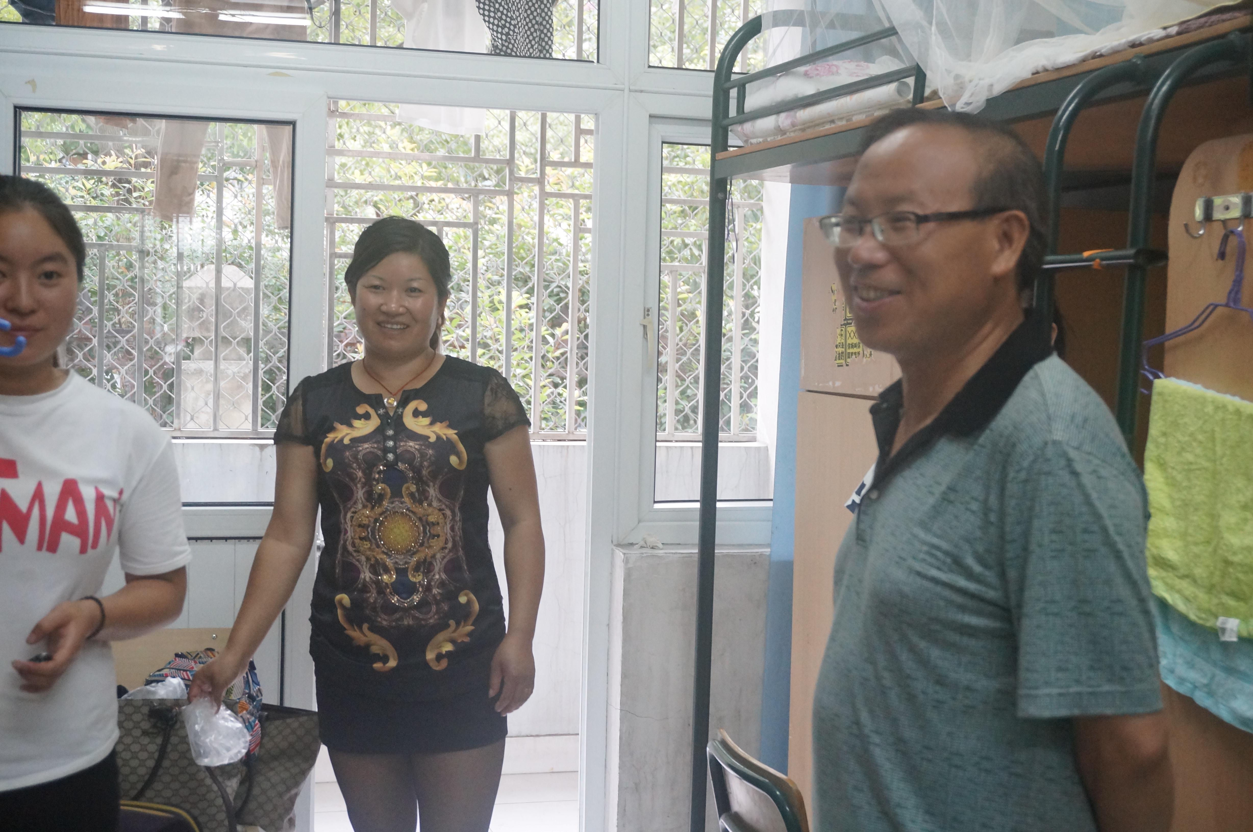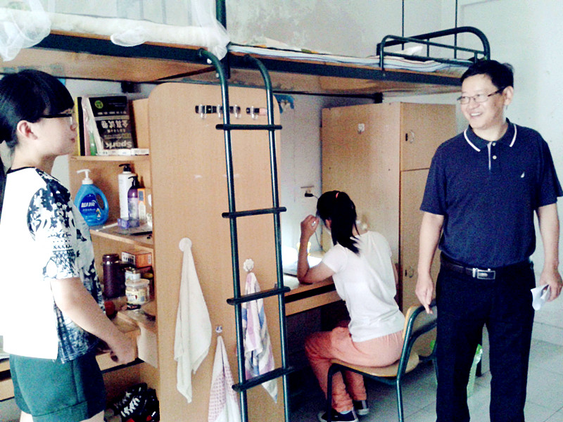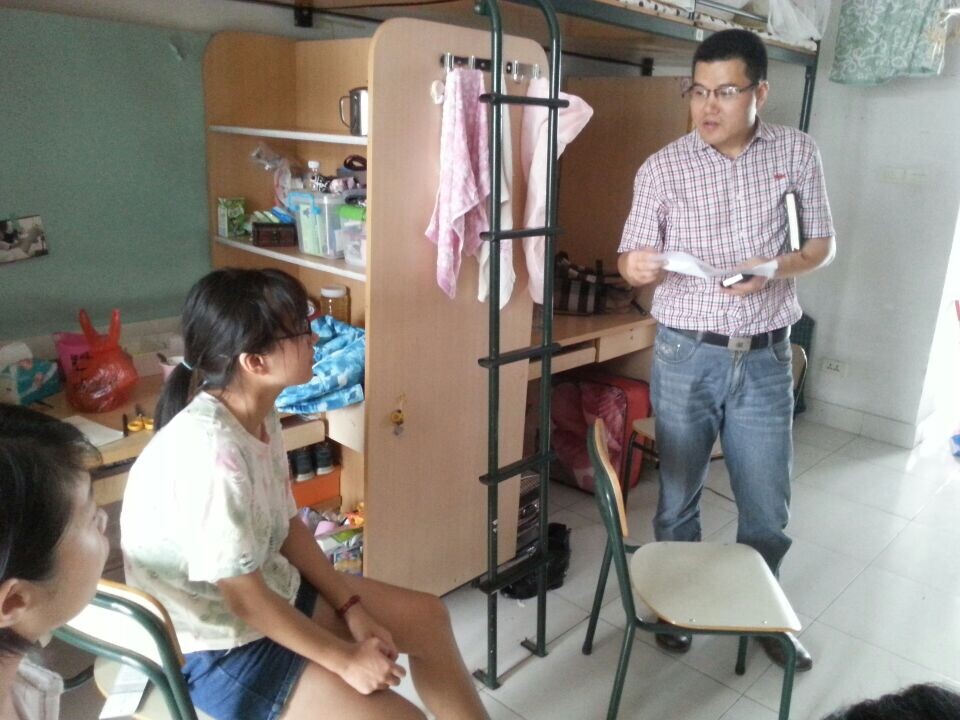 推开新生的寝室大门,老师们用和蔼的微笑迎接新生。面对新生们惊喜的目光,老师们亲切的问候:“你们的父母回去了吗?食堂的饭菜好吃吗?大学的生活还习惯吗?有什么问题需要帮忙解决吗?”令人惊喜的是新生们的适应性都很强,她们纷纷表示开学第一天的感觉还不错。新生们与老师们畅聊他们崭新的大学生活,并自信地表示自己会好好学习,决不懈怠。