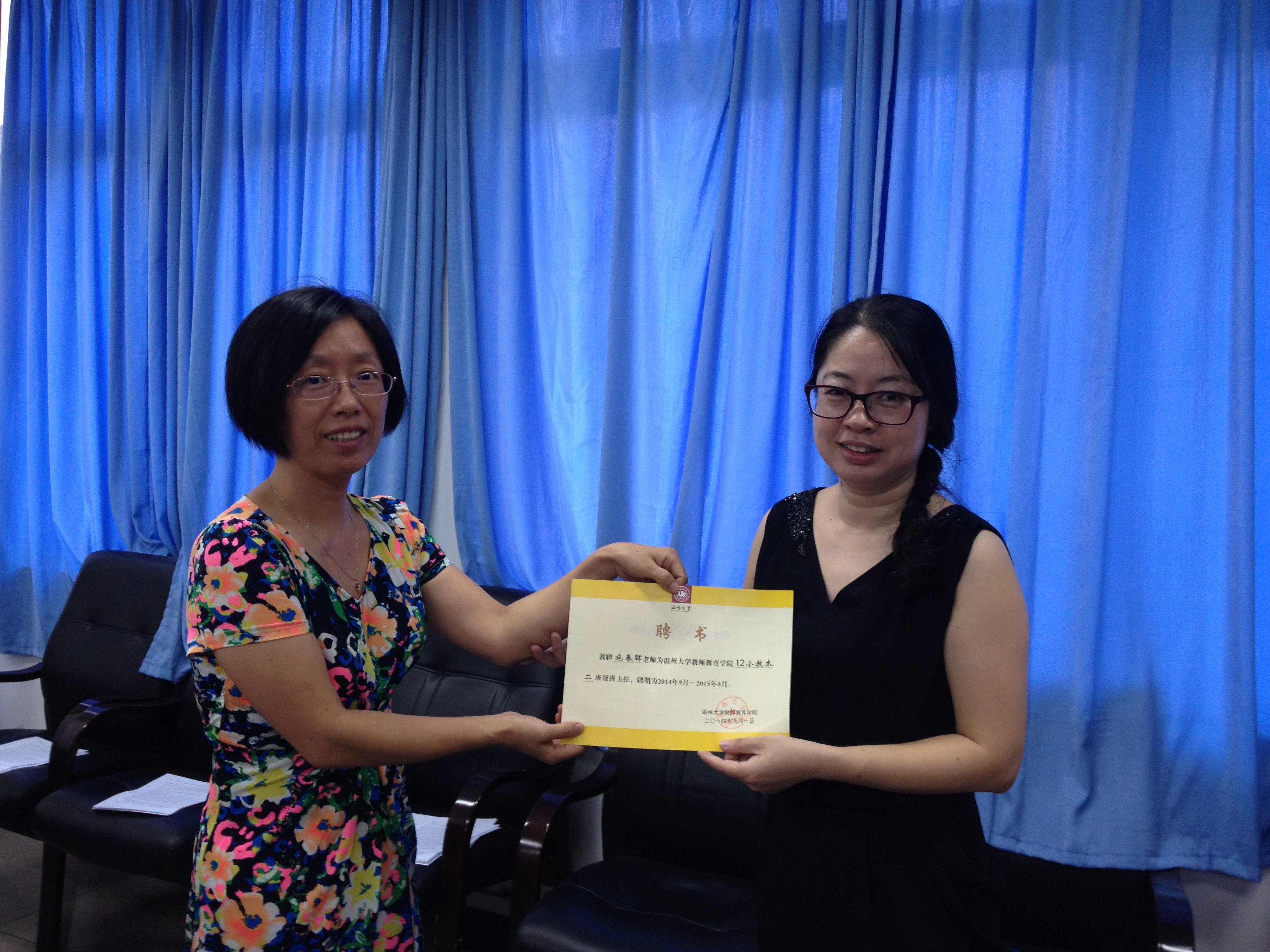 嵇小怡副书记做了总结发言。她高度肯定了91吃瓜 班主任老师们的工作,她引用今年教师节习近平同志在北师大师生代表座谈会上的讲话,“教育是一门‘仁而爱人’的事业,爱是教育的灵魂,没有爱就没有教育”来肯定班主任老师爱生、育人的辛勤付出,希望各位班主任老师能够继续把自己的满腔真情倾注于教育事业。最后,嵇小怡副书记为各班主任颁发聘书,再次体现了学院对班主任工作的重视与支持。