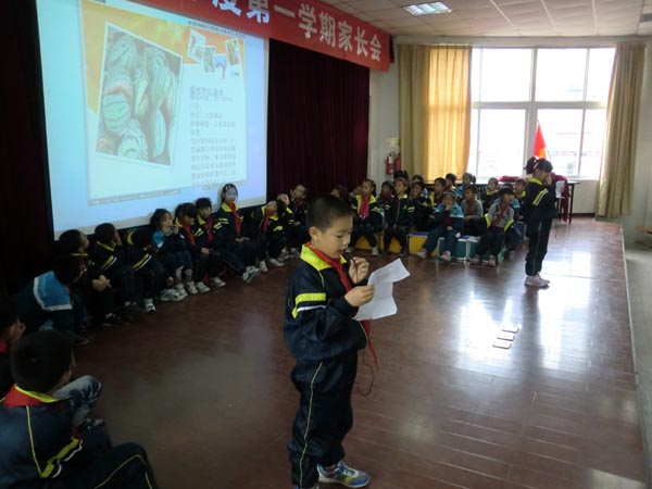 据了解,“食品安全在我心”主题班会于10月31日开始进行班会的人员挑选,班会的策划、排练工作,历时两个多星期,总共编排了11个环节:1、出队旗,唱对歌;2、主持人开场,班主任讲话;3、情景剧《良心蛋》;4、观看食品危害视频《毒奶粉事件》;5、食品安全资料汇报;6、独舞《鸭子戏水》;7、食品安全知识竞猜和现场互动;8、快板《食品安全在我心》;9、集体舞《健康操》;10、班主任总结;11、呼号,退队旗。支部党员分工合作,有的负责队歌、出旗、退旗的排练;有的负责食品安全资料的搜集;有的负责集体舞的排练;还有的负责电子书的制作,每一名党员都积极参与到本次班会的始终。俗话说“台上一分钟,台下十年功”,本次班会虽然只有短短的40分钟,但是班级指导师的辅助,每一位党员的付出,还有每一个学生的积极参与都是本次班会完满谢幕的必要条件。