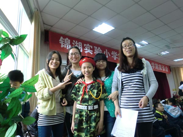 08小教本一班党支部策划、排练的“食品安全在我心”的主题班会在瑞安锦湖实验小学的阶梯教室开展,本次班会三年级段的四个班级的所有师生都参与其中,锦湖实小的教导主任姚素霞老师也前来观看。