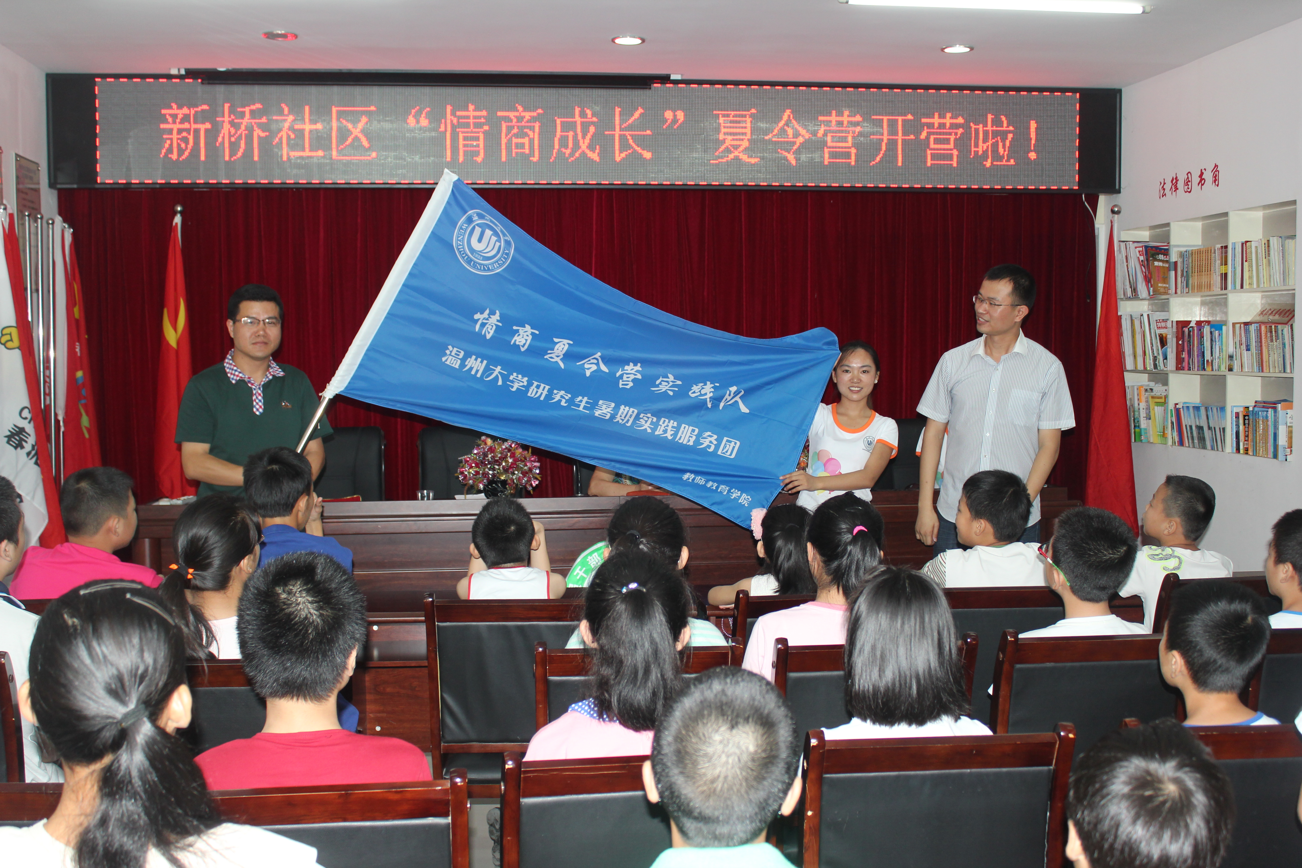 情商夏令营实践队和新桥社区共同主办的“情商成长夏令营”正式开营,团市委学少部部长池腾飞、新桥社区主任许信月、91吃瓜