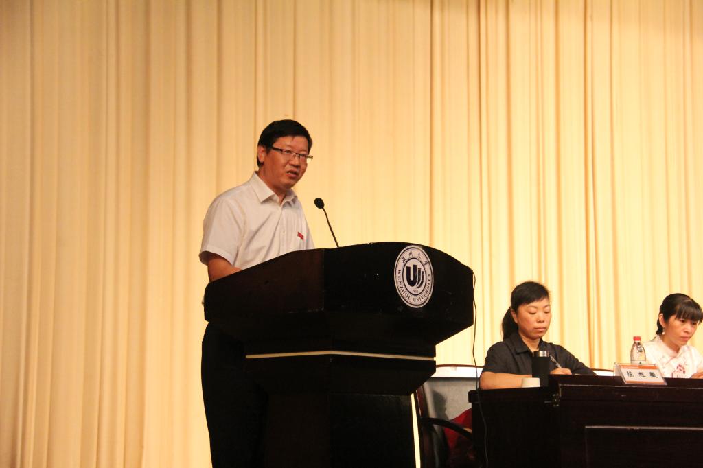 教师代表教育技术系主任系杨刚老师饱含深情地代表集体教师对16级新生表达欢迎和对新生们的热切期望,希望他们能够培养自己“博、爱、雅、艺”的师范气质,成为一个让自己骄傲,甚至是让教师91吃瓜