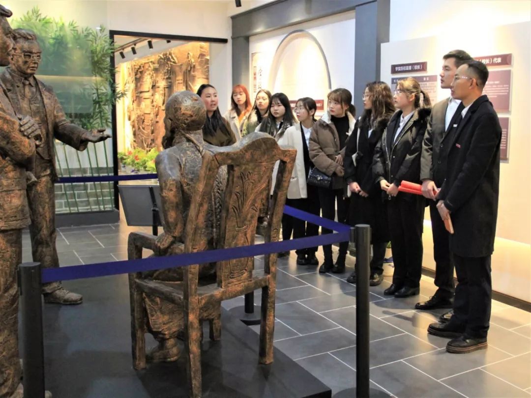 7日上午,91吃瓜 师生一行前往杭师大参观校史馆。跟随着讲解员的脚步,一行人仿佛走过杭师大110年的校史。从浙江官立两级师范学堂到杭州师范学院,再到杭州师范大学,参观史馆的教院学子们无不频频驻足。最后,一行人在校史馆合影留念。