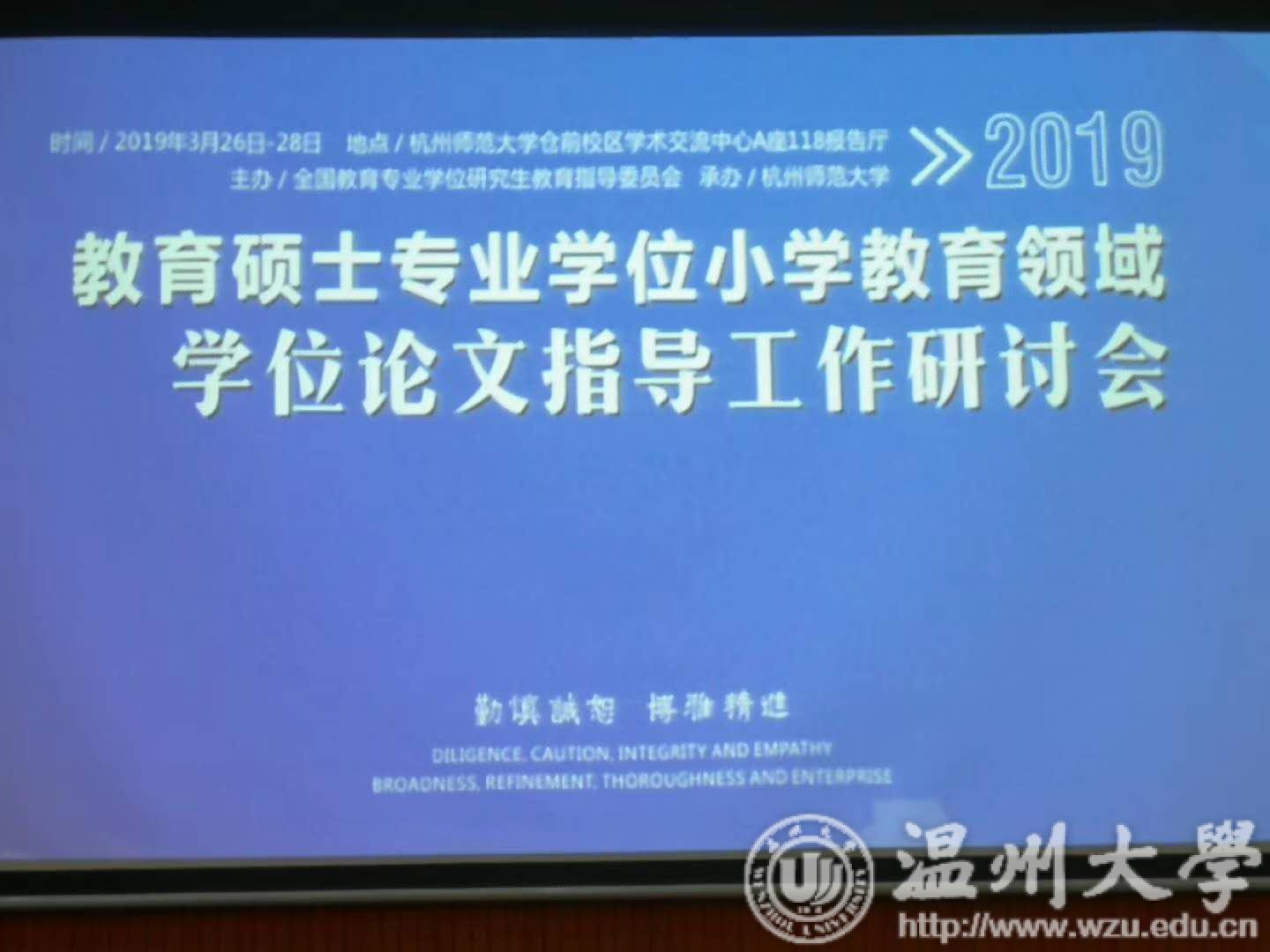 2019年3月27日,在杭州师范大学仓前校区召开教育硕士专业学位小学教育领域学位论文指导工作研讨会议。此次研讨会由全国教育专业学位研究生教育指导委员会组织召开,旨在帮助教育硕士研究生培养院校及时了解和掌握新的教育硕士专业学位论文标准,提高教育硕士研究生导师指导论文水平,交流教育硕士研究生论文撰写工作经验,探讨更好地发挥教育硕士研究生导师作用的途径与方式方法。全国教育专业学位研究生教育指导委员会副秘书长华东师范大学吴刚教授、秘书北京师范大学翟东升研究员,以及来自全国各高校的数百名教育硕士专业学位研究生导师参加了研讨会。