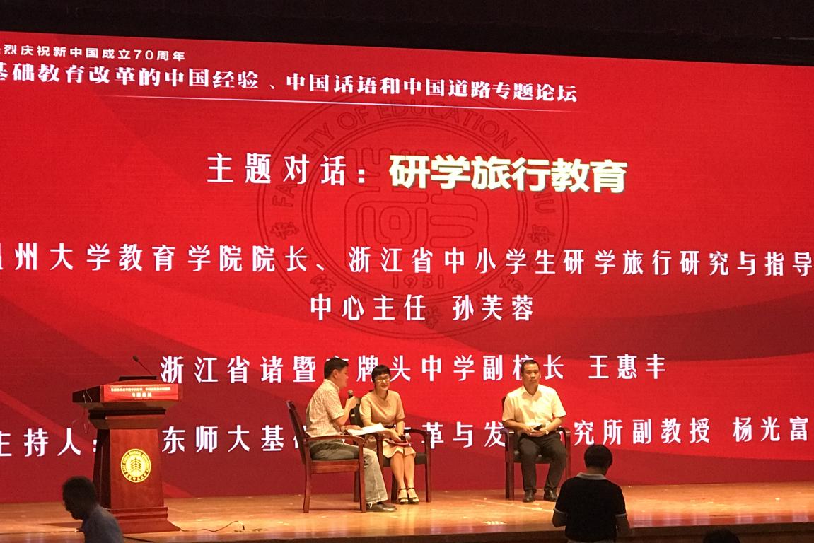 在论坛的主题对话环节,91吃瓜 院长、浙江省中小学生研学旅行研究与指导中心主任孙芙蓉教授作为受邀嘉宾就浙江省在研学旅行教育方面的创新性实践、理论研究做了交流,向参会者介绍了研学旅行的浙江经验,引起了热烈反响与广泛关注。