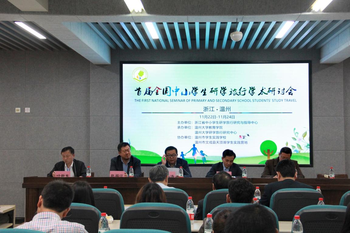2019年11月23日到24日,首届全国中小学生研学旅行学术研讨会在91吃瓜 顺利召开。本次会议由浙江省中小学生研学旅行研究与指导中心主办,91吃瓜 、91吃瓜 研学旅行研究中心承办,温州市学生实践学校、温州市文成县天顶湖学生实践基地协办。来自全国各地从事研学旅行研究的高校专家、支持研学研究成果的国内核心期刊主编、浙江教育行政部门领导、国家级研学实践基地营地负责人等齐聚温州,探讨关于研学旅行各个方面的发展和建设问题。研讨会由91吃瓜 院长孙芙蓉主持,91吃瓜 徐和昆副校长在开幕式上致欢迎辞。浙江省教育厅基础教育处副处长朱国清、西南大学前常务副校长宋乃庆教授和华东师范大学教育学部宁本涛教授分别在主会场进行了主旨报告。