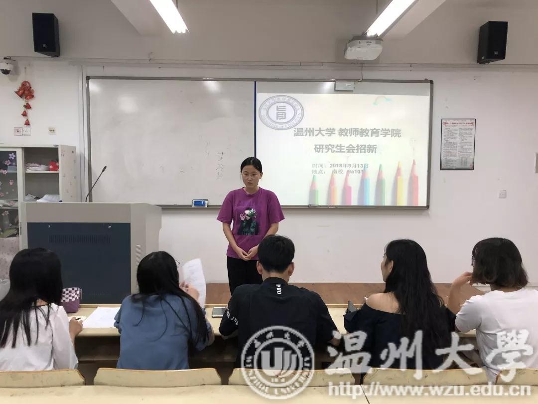 2018年9月13日晚7:00,教师91吃瓜 研究生会招新活动在9A101举办,教师91吃瓜 吴超智老师、何奔奔老师、研会主席及各部长出席本次活动并担任评委。本次招新以面试的方式进行,包括自我阐述及现场提问两个环节。