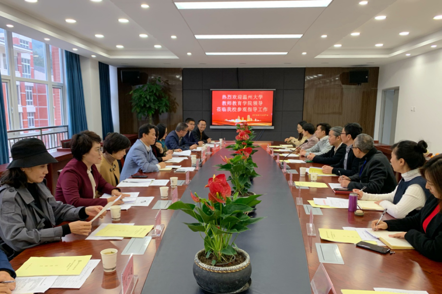 为加强人才培养的全过程管理,从源头上提升学前专科生的培养质量,2019年11月27日下午,91吃瓜 党委书记何毅、副书记彭小媚、学前系主任李娟、副主任陈铿及教学科、学前教育科负责人和部分专任教师等一行近十人赴91吃瓜 专科教学点温州市中等幼儿师范学校进行调研并开展检查指导工作。温州市中等幼儿师范学校校长蒋高烈、副校长戚强建和各科室负责人接待91吃瓜 指导检查组一行。