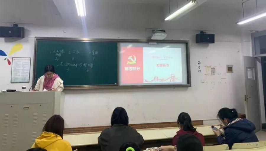 11月19日,19小教3班的同学们在南9b111教室开展了“不忘初心、牢记使命”的主题团日活动。在党史知识竞赛环节,同学们从多个方面具体解读十九大精神,并以此激励自己守住初心,坚定信心,打磨匠心,坚持“一个核心、一个理论、一条道路”,提高自己的思想觉悟,坚定理想信念,在新时代的征程中放飞青春梦想,书写人生华章!