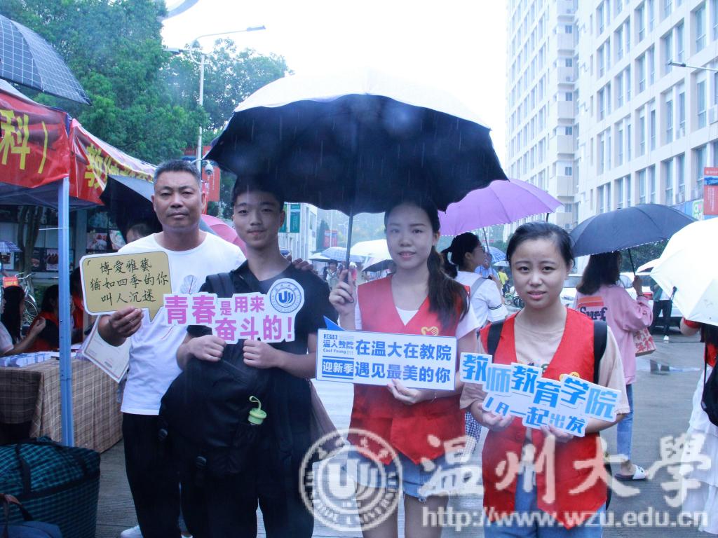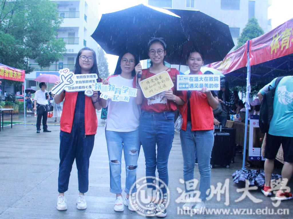 为了做好学院迎新工作,志愿者们分批次轮流接待新生。他们各司其职,有的坐在帐篷内为新生办理报到手续以及分发新生大礼包,有的冒着小雨帮忙新生照看、搬运沉重的行李,有的引导新生到宿舍入住。在工作的同时,他们还热心地为学生和家长解答疑惑,介绍学习生活经验。新同学们拿着教院提供的明信片,写下想对未来的自己说的话,投进红色的邮筒中,毕业时明信片会如期而至。报到完毕的新同学们纷纷举起教院学生会为他们精心准备的迎新小标牌,一旁的志愿者用相机为新生和家长记录下这宝贵的一刻。志愿者热情周道的服务、温馨甜蜜的笑容使新同学们感受到了来自教院师生的亲切关怀。