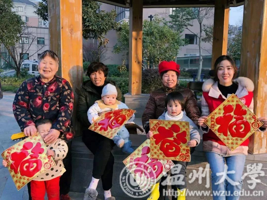 新春将近,志愿者们将新春的红带入生活,带入家庭。他们为社区的老人们贴上福字和春联,喜庆的红色为棕色的门楣增添了无数新年的气息。志愿者们将新春关怀传播到每一户家中,传递到每一位老人心间,为寒冷的冬日注入温暖与活力。冬日的暖阳映着志愿者们的笑脸,他们将手中的福字交给老人们。福字,传递的不仅仅是温大学子对老人的祝福,更是对中国文化的一种传承。当一幅幅红色的福字,从他们的手中交由老人们手中时,属于中华的传统文化在传递,属于温大教院的社会关怀在传递。