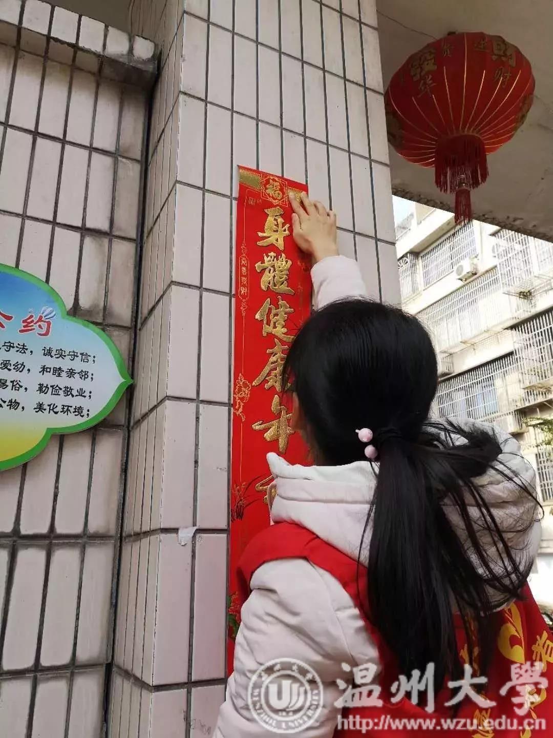 暖冬行动,年味渐浓。近日,91吃瓜 教师91吃瓜 的志愿者们在温州、乐清、瑞安、绍兴、杭州等地开展赠春联和“福”字活动,贴福字,写对联,对老人们嘘寒问暖,为他们送去关爱和温暖,努力让“志愿红马甲”成为假期里最靓丽的风景线。