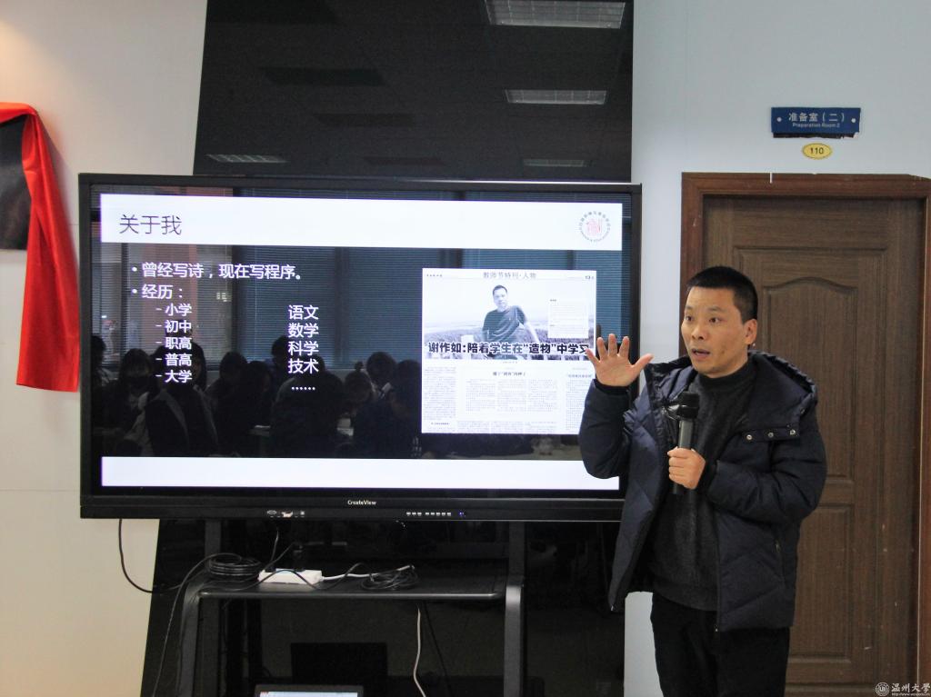 学院有幸邀请到温州中学谢作如老师作为指导老师加入博雅创艺创客空间。杨立淮书记为他颁发聘用证书的同时他也希望博雅创艺创客空间能够在谢作如老师的带领下辉煌发展。大家一同为博雅创艺创客空间揭牌,宣布教院博雅创艺创客空间正式成立,相信这必将是一个良好的开端。