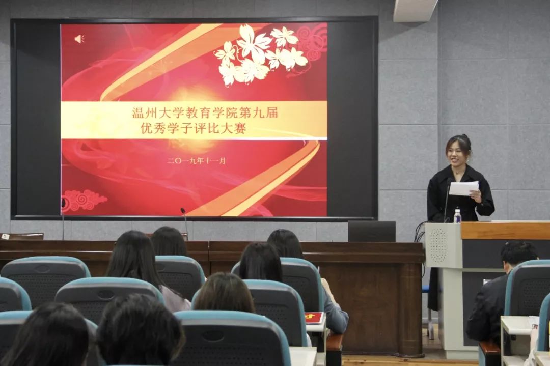 随后,主持人简短地向在场观众们介绍了赛制规则,优秀学子评比正式开始。二十位选手依次登台,通过演讲与PPT相结合的方式,声情并茂地向在场观众讲述了自己在温大91吃瓜 这几年里学习、工作以及生活的故事。她们展现了如何更高效地学习,和利用课余时间参与的一系列志愿服务与社会实践以及在教院生活的点滴感悟和成长历程。