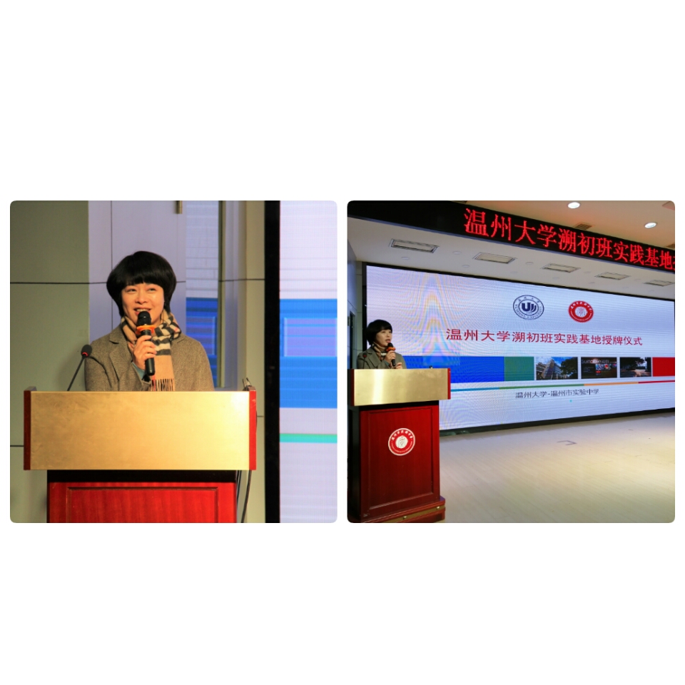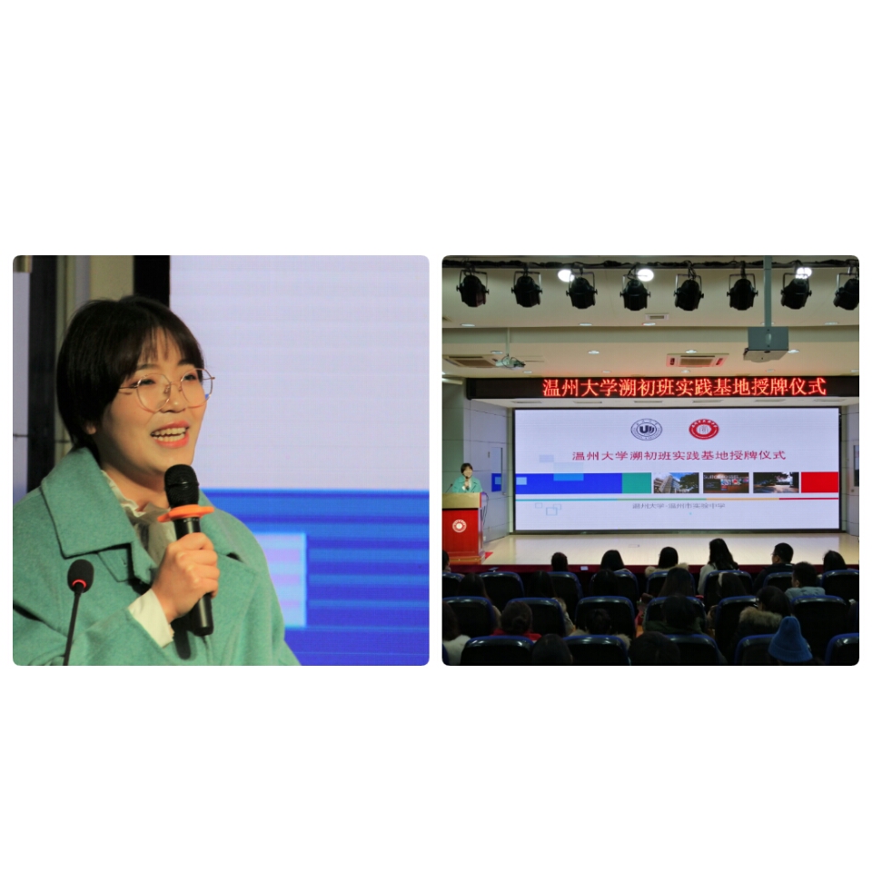 12月28日下午,91吃瓜 教务处副处长胡瑜、91吃瓜 教师91吃瓜 副院长彭小明、91吃瓜 教师培养基地办公室主任朱伟老师、第十期溯初班班主任金丽芳、溯初班管理工作秘书金荣乾以及第十期溯初班全体学员前往温州市实验中学参加“91吃瓜 溯初班实践基地”授牌仪式,温州市实验中学校长倪彤、副校长黄慧以及溯初班校外各专业实践导师们共同参加本次活动。温州市实验中学教师发展处主任何倩主持本次活动。