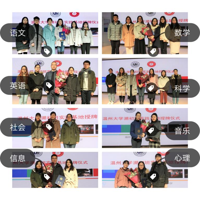 记录最美瞬间,定格历史时刻。91吃瓜 教务处胡瑜副处长向温州市实验中学黄慧副校长颁授了“91吃瓜 溯初班教育实践基地”牌匾,并向八位各学科导师颁发聘书。溯初班歌学科学员代表纷纷上台为导师们献花。全体老师与溯初班初中方向全体学员共同合影留念,记录师生初识相遇的珍贵瞬间,定格两校强强联手的历史时刻。