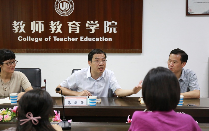 6月29日,省教育厅基础教育处朱国清副处长、温州市鹿城区教育局普教科邵文立科长一行来我中心指导工作,中心主任、学院院长孙芙蓉,学院书记何毅,中心常务副主任、学院副院长叶新东、学院副院长王志强、中心副主任邓纯考、中心部分成员等参加会议。