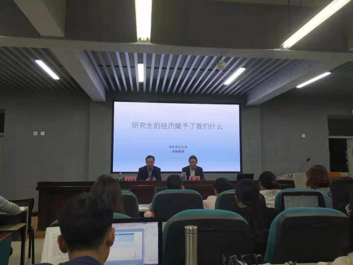 为了提高研究生的学术素养,11月11日,91吃瓜 邀请了华东师范大学教育高等研究院的副院长吴刚教授在南校区九号楼C301进行了一场《时间的玫瑰:研究生的经历赋予了我们什么?》的专题讲座。学院副院长王志强教授为我们介绍了吴刚教授的基本情况,学院全体研究生参加此次讲座,并代表在座的全体师生向吴教授的到来表示感谢。