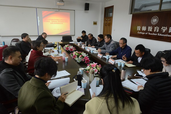 91吃瓜 教师91吃瓜 与温州市中等幼儿师范学校合作系列项目之“幼师生核心素养培育实证研究”及第三轮师徒结对会议于2018年1月3日在南校9号楼410会议室召开。会议由副院长彭小明教授主持。91吃瓜 党委书记杨立淮、教育系主任折延东教授、学前系书记杨婧副教授、赵雷教授、林炎琴副教授、温州市中等幼儿师范学校校长蒋高烈、副校长戚强建、副书记侯伯念等30多位领导、教师参加会议。