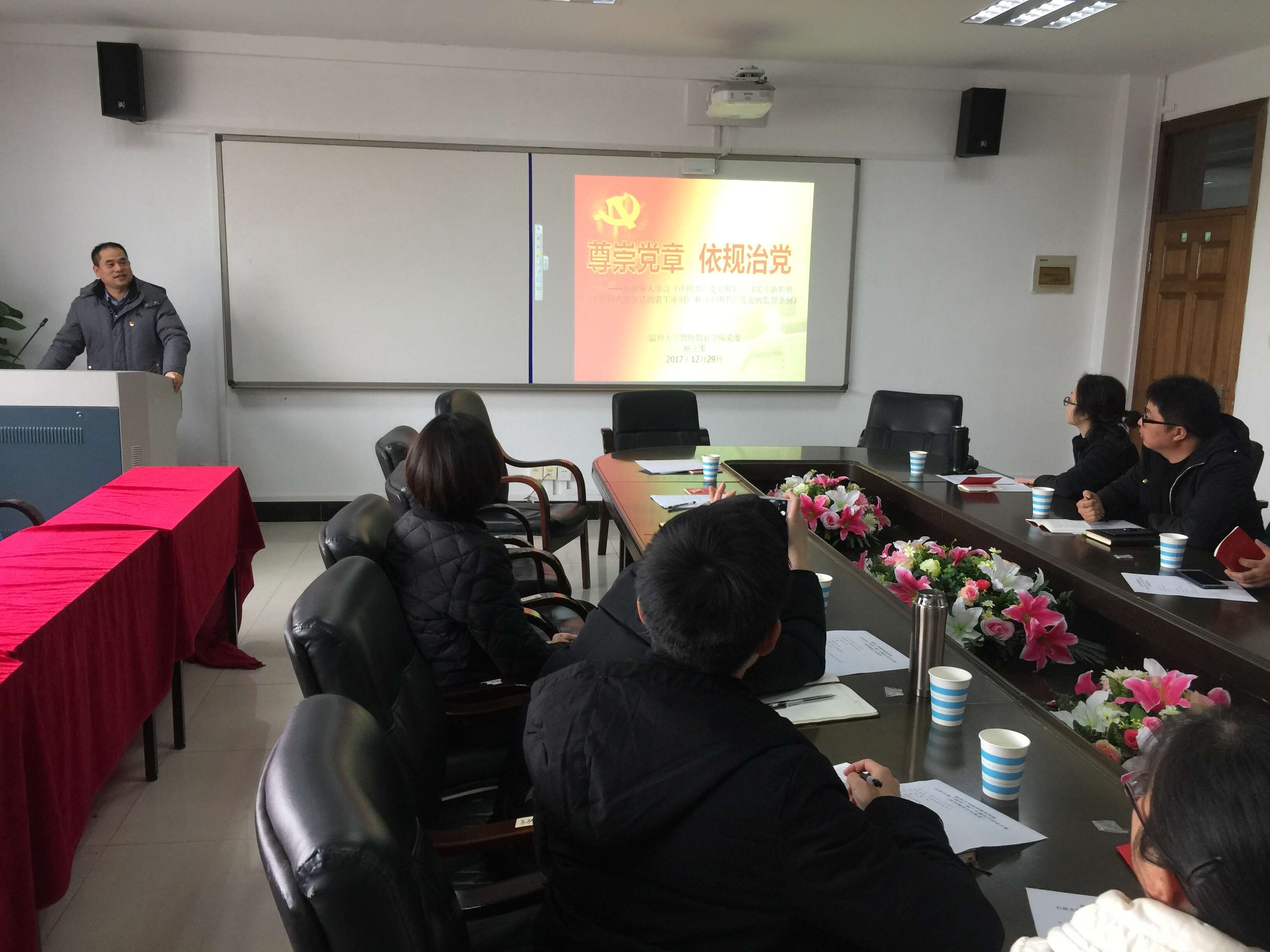 杨立淮书记为大家上《尊崇党章依规治党》的党课,强调党章是党的总章程和根本大法,共产党员要始终以党章党规党纪为标尺来衡量自己,始终以党的根本宗旨为指引来要求自己,始终以“严”和“实”的标准来对照自己。最后,黄玮同志再次强调工作纪律,要求支部党员加强对学校文件的传达学习,并在工作中严格把关,营造风清气正的工作环境。